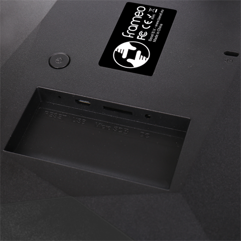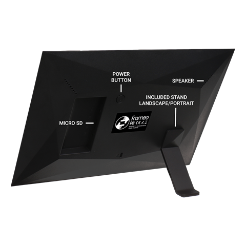 De HF-101B van Frameo is een zwarte digitale fotolijst met een 10.1 inch IPS scherm. Het bijzondere aan de Frameo is dat u met een smartphone-app draadloos foto’s op de Frameo kunt plaatsen. Plaats de Frameo centraal in uw woonkamer en geniet van de mooiste foto’s, gemaakt door u en uw familie. Bediening is zeer eenvoudig, door het aanraakgevoelige scherm en het Android-besturingssysteem. De HD-resolutie van 1280 bij 800 pixels zorgt voor scherpe en levendige foto’s. De afmetingen van het scherm bedragen 21,5x13,3 cm. Inclusief rand meet de Frameo 26,3x18,3 cm. De Frameo is 2,3 cm dik. Een grote kijkhoek maakt het mogelijk om foto’s vanuit de volledige woonkamer te bekijken. Op het interne geheugen van de Frameo kunt u meer dan 1000 foto’s plaatsen. Het is ook mogelijk om foto’s te importeren of een backup te maken met een micro SD kaart of USB-stick. U plaatst de Frameo zowel horizontaal als verticaal op een tafel met het pootje.