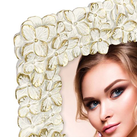 De Zep Fotolijst EE7557 Hyeres 13x18 cm is een exclusieve lijst welke geschikt is voor 1 foto. Je kunt in deze lijst 1 foto van 13x18 cm plaatsen. De fotolijst kenmerkt zich door zijn witgouden kleur. Samen met de versiering met 3D bloemen zorgt voor een elegante klassiek effect. Ideaal voor speciale en waardevolle gebeurtenissen. De totale afmetingen, inclusief het frame, bedragen 23 x 18 cm (lxb).