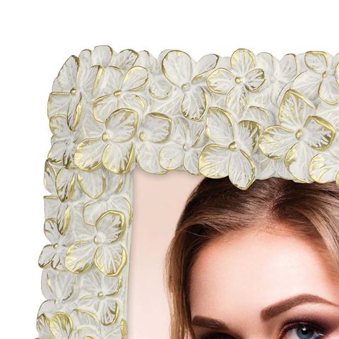 De Zep Fotolijst EE7568 Hyeres 15x20 cm is een exclusieve lijst welke geschikt is voor 1 foto. Je kunt in deze lijst 1 foto van 15x20 cm plaatsen. De fotolijst kenmerkt zich door zijn witgouden kleur. Samen met de versiering met 3D bloemen zorgt voor een elegante klassiek effect. Ideaal voor speciale en waardevolle gebeurtenissen. De totale afmetingen, inclusief het frame, bedragen 25,5 x 20,5 cm (lxb).