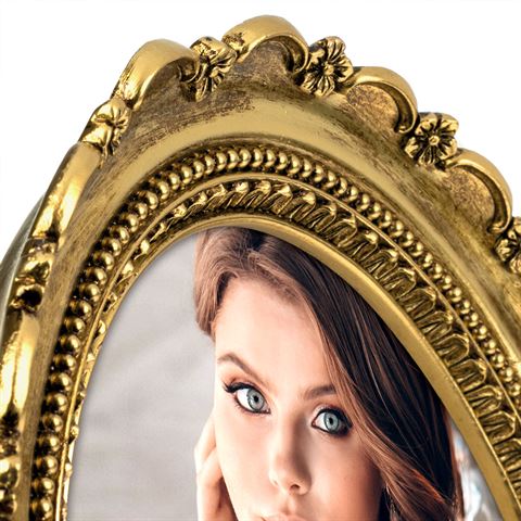 De Cornice Beziers 10x15 van Zep is een ovale fotolijst die direct de aandacht trekt met zijn rijke barokke reliëf en elegante antieke afwerking. Gemaakt van goudkleurige resin, straalt deze lijst een klassieke charme uit die perfect past bij bijzondere momenten zoals jubilea of verjaardagen. Met zijn fluwelen achterkant en luxe uitstraling is het een stijlvolle toevoeging aan elk interieur.
