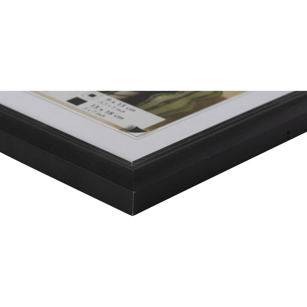 De Henzo Artos fotolijst 13 x 18 centimeter zwart is een klassiek lijstje voor een afbeelding met een formaat van 13 centimeter bij 18 centimeter. Dit product wordt aan de achterkant geopend door de clips los te maken zodat je een foto kunt plaatsen. De omranding is zwart van kleur en gemaakt van hout. De afmetingen inclusief deze rand zijn een breedte van 17 centimeter een hoogte van 22 centimeter en een dikte van 12 centimeter. Het glas van de zwarte Henzo Artos fotolijst 13 x 18 centimeter is gewassen en geslepen en daardoor erg helder. Als de lijst gesloten is kan deze met een staander worden neergezet. Het is ook mogelijk om de foto staand of liggend op te hangen.