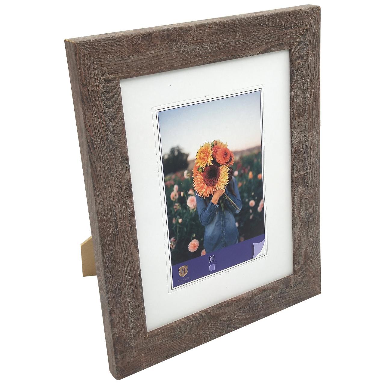 De Henzo fotolijst Dahlia 15x20 centimeter bruin is een kunststof lijst met een mooie houtstructuur op de 28 mm brede lijst. Het glas van de lijst is gewassen en geslepen en is daardoor zeer helder. In het artikel is een voor geperforeerde passe-partout bijgeleverd waarmee je een foto van 10 bij 15 centimeter kunt plaatsen. Gebruik je geen passe-partout dan past er een foto van 15 bij 20 centimeter in de lijst die je in zowel portret- als landschapsformaat kunt neerzetten of aan de wand hangen.