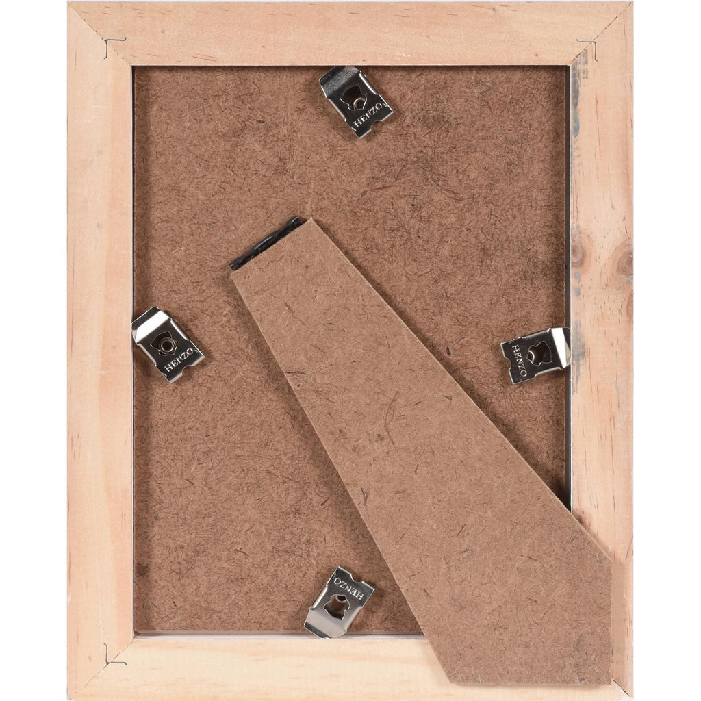 De Henzo Driftwood fotolijst 15 x 20 centimeter wit is een landelijk ogende fotolijst die je aan de wand kunt ophangen of met een standaard aan de achterkant ergens kunt neerzetten. Het kan zowel verticaal als ook horizontaal. De kleur van de lijst is wit en het artikel wordt ook in andere kleuren en formaten verkocht. Door de Henzo Driftwood fotolijst 15 x 20 centimeter wit aan de achterkant met de clips te openen kun je een foto op het geslepen en gewassen glas plaatsen. Dat kan met de passe-partout voor een foto van 13 bij 18 centimeter of zonder passe-partout met een foto van maximaal 15 centimeter bij 20 centimeter. Het frame heeft een breedte van 23 centimeter en is 29 centimeter hoog.