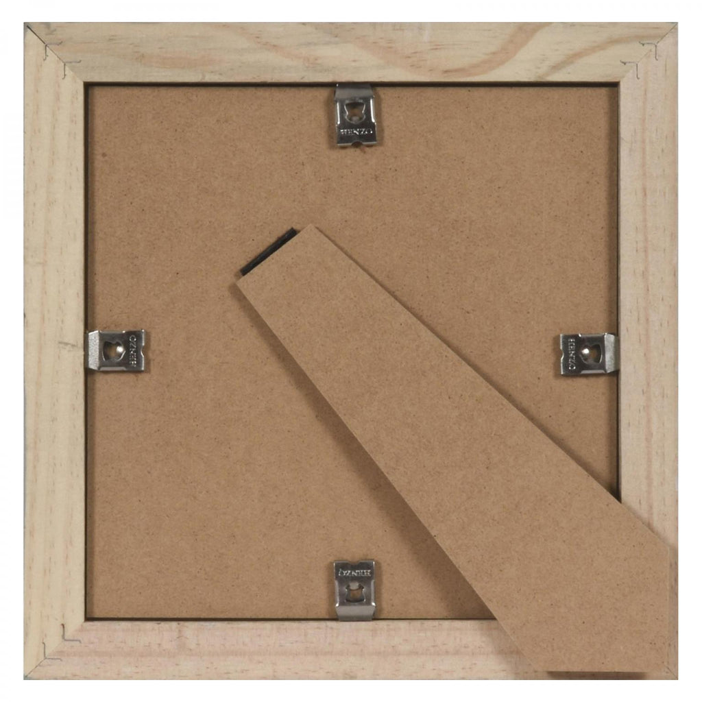 De Henzo Driftwood fotolijst 20 x 20 centimeter wit is een stijlvolle fotolijst met een landelijke uitstraling. Dit product heeft een houten rand met een grove ruwe bovenzijde uitgevoerd in de kleur wit. De fotolijst kan met clips aan de achterkant worden geopend zodat je de mogelijkheid hebt om een foto te plaatsen met een maximale afmeting van 20 bij 20 centimeter. Je kunt ook gebruik maken van het passe-partout dat standaard wordt meegeleverd. Dan kan er een foto van 13 bij 13 centimeter in de lijst worden gedaan. De Henzo Driftwood fotolijst 20 x 20 centimeter wit kan vervolgens staand of liggend aan de wand worden opgehangen. De afmetingen inclusief de omlijsting zijn een breedte van 25 centimeter en een hoogte van 25 centimeter.