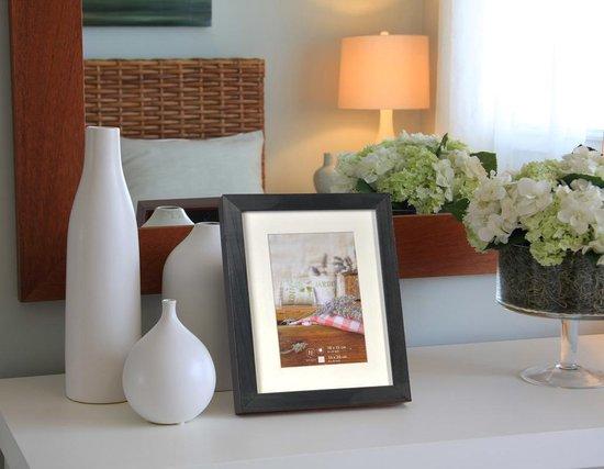De Henzo Jardin fotolijst 10 x 15 centimeter zwart is een stijlvolle fotolijst met een klassieke uitstraling. Dit artikel is gemaakt om aan de muur te hangen of om ergens te worden neergezet met een mooie foto. Voor het ophangen heb je de mogelijkheid om de lijst horizontaal of verticaal op te hangen. Het neerzetten is mogelijk met de aanwezige staander. De Henzo Jardin fotolijst 10 x 15 centimeter zwart is voorzien van clips die de achterkant op zijn plaats houden. Als deze clips opzij gedraaid worden kan de achterzijde verwijderd worden en is het mogelijk om een foto op het zeer heldere glas te leggen. Met de aanwezige passe-partout kan de afbeelding 7 bij 10 centimeter zijn zonder passe-partout is dat 10 bij 15 centimeter.