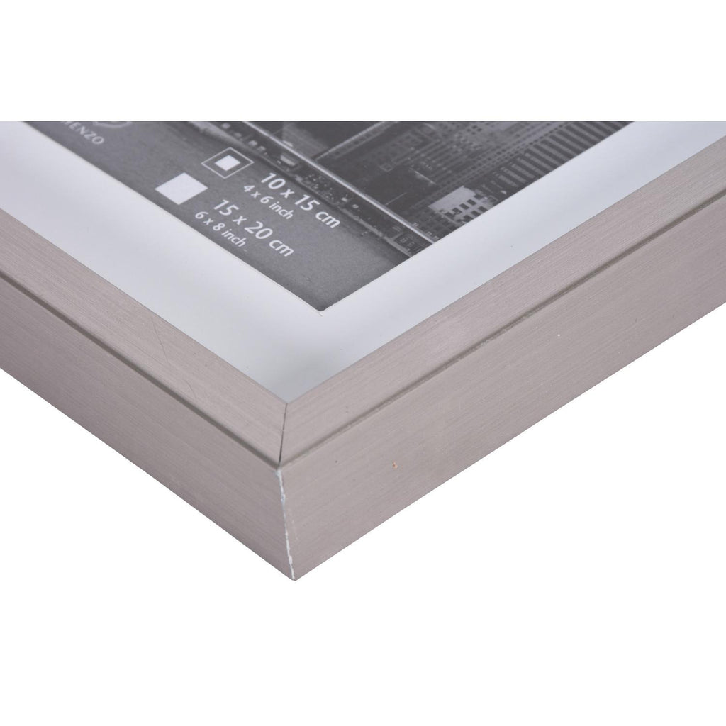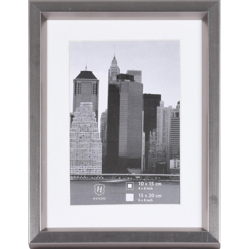Deze Henzo Metallica fotolijst 15 x 20 centimeter donkergrijs is een mooie fotolijst met een Kunststof rand. Een foto kan in dit artikel geplaatst worden door de achterkant los te maken en te verwijderen. Er kan dan een afbeelding met een maximale afmeting van 15 bij 20 centimeter op het glas gelegd worden. De Henzo Metallica fotolijst 15 x 20 centimeter donkergrijs is uitgerust met een passe-partout die je kunt gebruiken voor een foto van 10 bij 15 centimeter. Met de steun aan de achterkant kan de fotolijst ergens worden neergezet. Het is ook mogelijk om het fotolijstje horizontaal of verticaal aan de wand op te hangen. De omranding is gemaakt van kunststof en uitgevoerd in een moderne donkergrijze kleur.