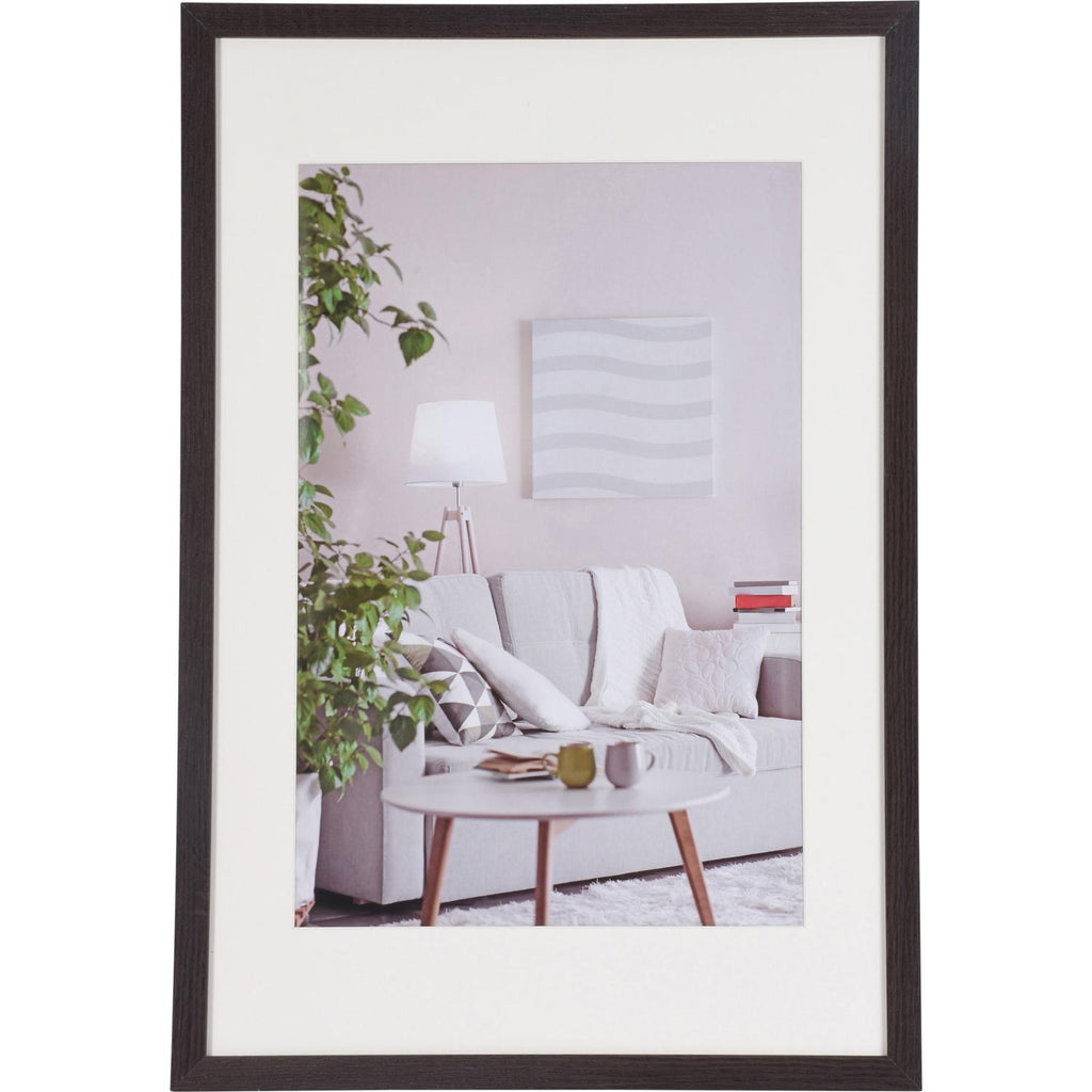 Deze stijlvolle Henzo Modern fotolijst 40 x 60 centimeter donkerbruin is modern en ideaal om een mooie foto op de beste manier mee aan de wand op te hangen. Deze fotolijst wordt standaard verkocht met een passe-partout die bedoeld is voor een afbeelding van 30 bij 45 centimeter. Maak je hier geen gebruik van dan kan er een foto met een formaat van maximaal 40 bij 60 centimeter gebruikt worden. Je opent de Henzo Modern fotolijst 40 x 60 centimeter donkerbruin met clips aan de achterzijde zodat er een foto op het heldere glas gelegd kan worden. Nadat de lijst gesloten is kun je deze in landschapsformaat of portretformaat ophangen aan de muur. De kleur van de houten rand is donkerbruin.