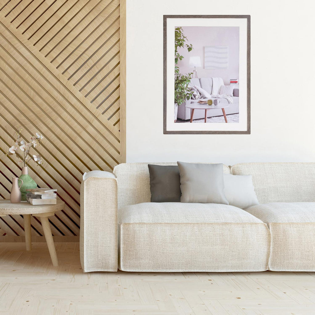 Deze stijlvolle Henzo Modern fotolijst 50 x 70 centimeter donkergrijs is een lijst voor aan de wand. In deze moderne fotolijst is plaats voor een afbeelding die een maximale afmeting van 50 bij 70 centimeter kan hebben. Je kunt ook gebruik maken van de passe-partout die je standaard bij de aanschaf van dit artikel ontvangt. Dan is het mogelijk om een foto met een formaat van 40 bij 60 centimeter in de Henzo Modern fotolijst 50 x 70 centimeter donkergrijs te stoppen. Deze lijst kan nadat de foto geplaatst is horizontaal of verticaal aan de wand worden opgehangen. De rand van het artikel heeft een donkergrijze kleur en is gemaakt van hout. Inclusief deze rand is het formaat 74 bij 54 centimeter.