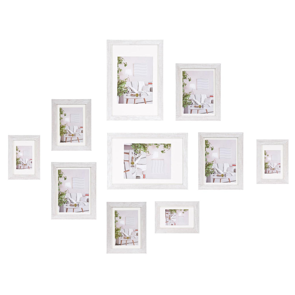 Met de Henzo Modern fotowand 10 lijsten wit heb je de mogelijkheid om tien verschillende foto’s van verschillende formaten in portretformaat of landschapsformaat aan de muur op te hangen. Deze set bestaat uit twee lijsten voor foto’s van 13 bij 18 centimeter drie lijsten voor foto’s met een formaat van 15 bij 20 centimeter drie lijsten voor een afbeelding van 10 bij 15 centimeter en twee lijsten voor een foto van 20 bij 30 centimeter. De randen van de Henzo Modern fotowand 10 lijsten wit zijn gemaakt van ruw hout waarmee het geheel een landelijke uitstraling krijgt. De fotolijsten worden met clips aan de achterzijde geopend zodat je foto’s kunt plaatsen.