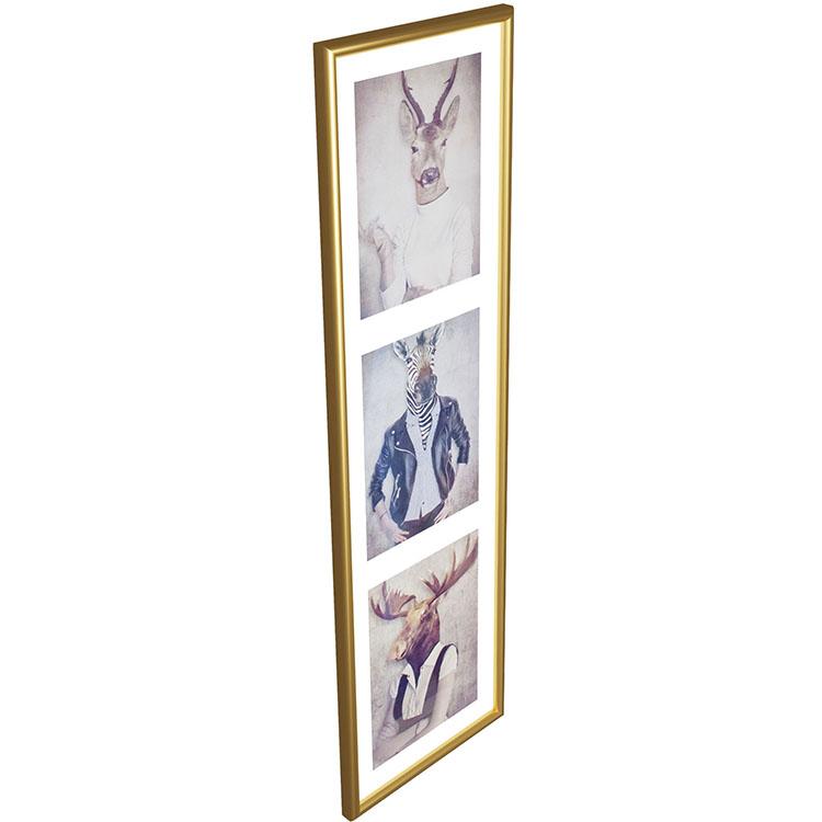 De collagelijst Henzo Napoli Gallery fotolijst voor 3 foto’s 15x20 cm goud is een strakke eigentijdse fotolijst die in maar liefst 10 verschillende kleuren verkrijgbaar is. Er zit hierdoor altijd wel een kleur bij die in jouw interieur past. In elke lijst kunnen 3 foto’s worden geplaatst. De afmetingen van elke foto kunnen maximaal 13x18 centimeter zijn. Plaatsing geschiedt eenvoudig en snel zodat je ook afbeeldingen gemakkelijk kunt wisselen. De stevige lijst is gemaakt van kunststof en heeft daardoor een bescheiden gewicht. Het ophangen van deze galerielijst gaat dan ook zonder problemen.
