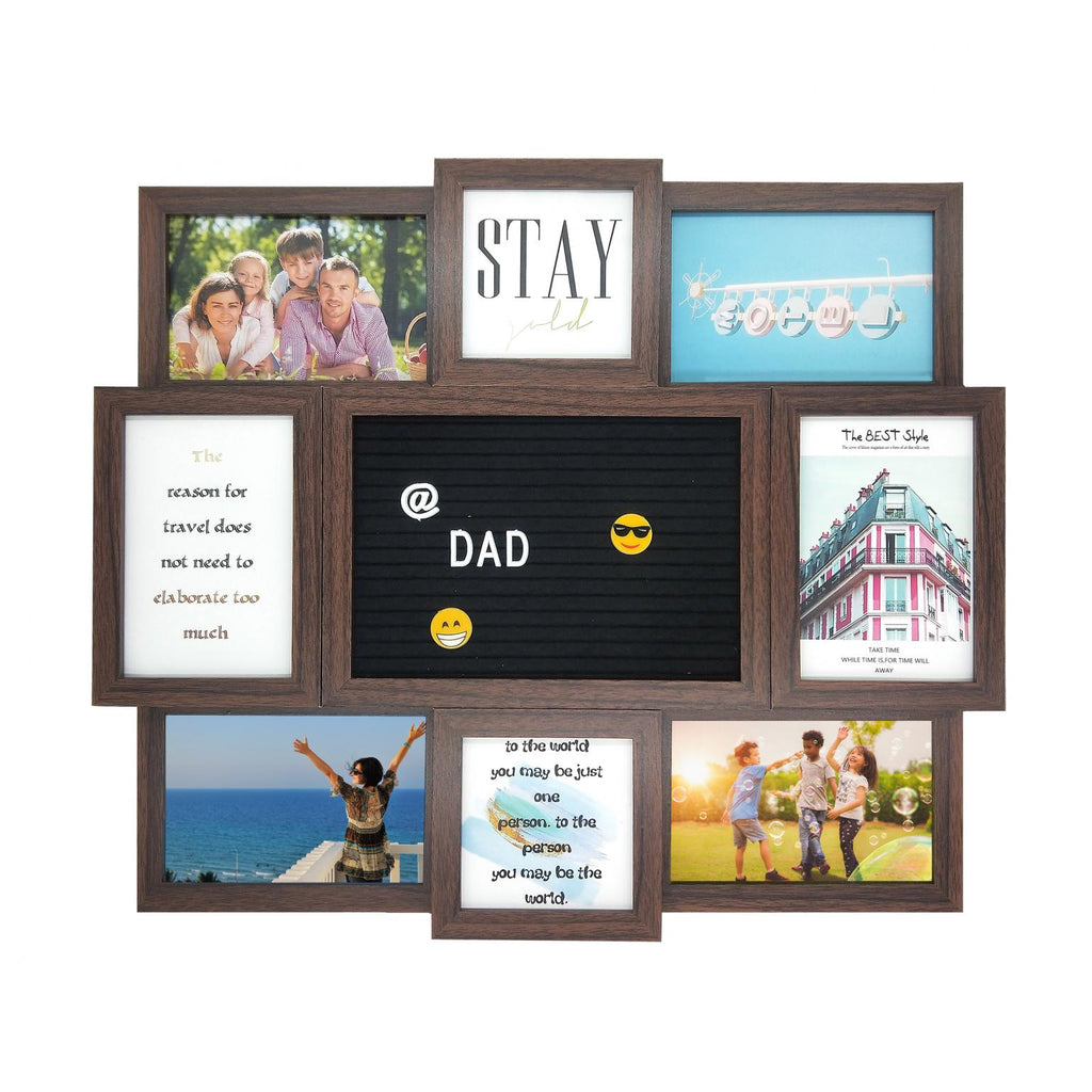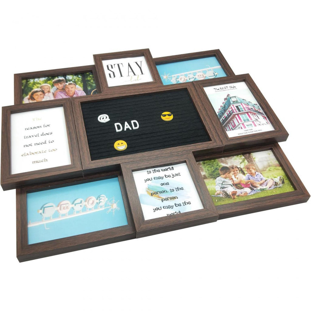 Met dit Henzo letterbord bruin voor 8 foto’s bruin kunnen berichten eenvoudig en snel worden gedeeld. Behalve het bord zelf worden daartoe letters en andere hulpmiddelen geleverd die op het bord geprikt kunnen worden. Zelf schrijven knippen en plakken is daarmee verleden tijd. Letters emoticons en diverse fotohoeken zorgen ervoor dat elke boodschap kan worden weergegeven. Op dit bord kunnen verder 8 foto’s van verschillende formaten in de lijsten worden geplaatst. Het bord is van hout heeft een afmeting van 47 bij 57 centimeter en kan staand of hangend worden gebruikt. Hierdoor kunnen de 8 extra foto’s worden geplaatst in landschaps- of portretvorm.