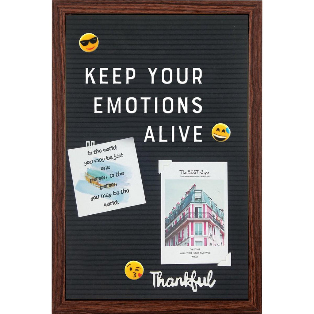 Met dit Henzo letterbord donkerbruin kunnen berichten eenvoudig en snel worden gedeeld. Behalve het bord zelf worden daartoe letters en andere hulpmiddelen geleverd die op het bord geprikt kunnen worden. Zelf schrijven knippen en plakken is daarmee verleden tijd. Letters emoticons en diverse fotohoeken zorgen ervoor dat elke boodschap kan worden weergegeven. Het bord is van hout heeft een afmeting van 30 bij 45 centimeter en kan staand of hangend worden gebruikt.
