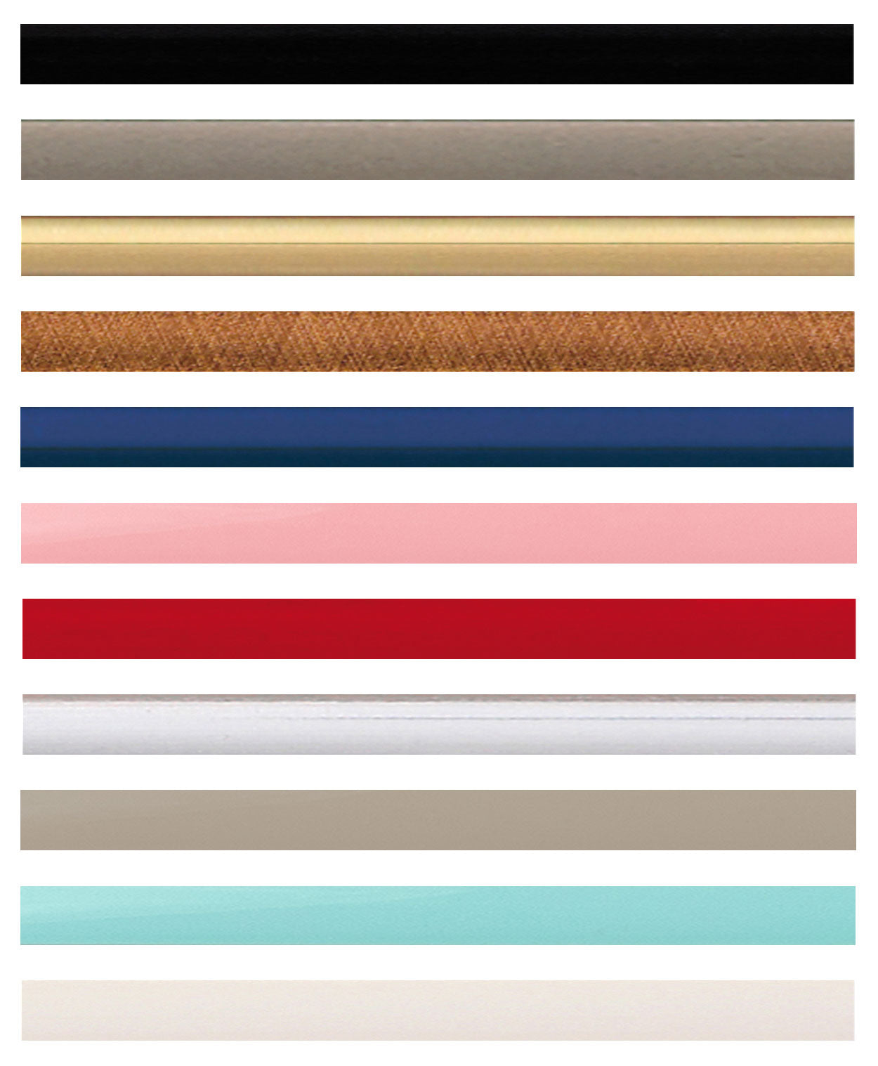 blauw - brons - geel - goud - groen - rood - zwart - zilver - staalgrijs - taupe - wit