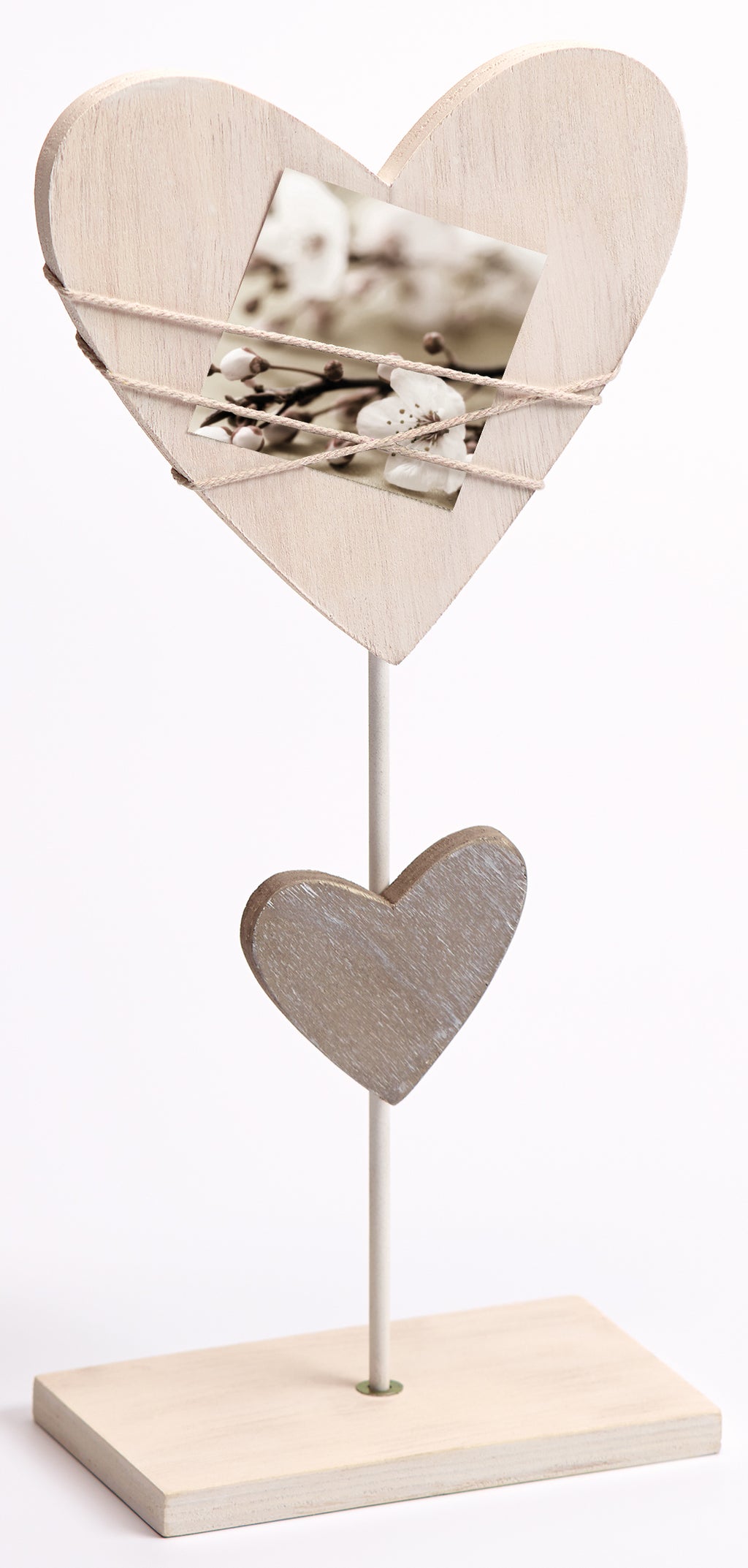 De Bella portretlijst is een romantisch detail voor je interieur. Het grove houten profiel in hartvorm geeft een warme, landelijke uitstraling. Je foto wordt op een originele manier vastgehouden door de speelse koordhouder. Verkrijgbaar in grijs of wit en voorzien van een stevige standaard. Een charmante lijst voor je mooiste herinneringen of een liefdevol cadeau.