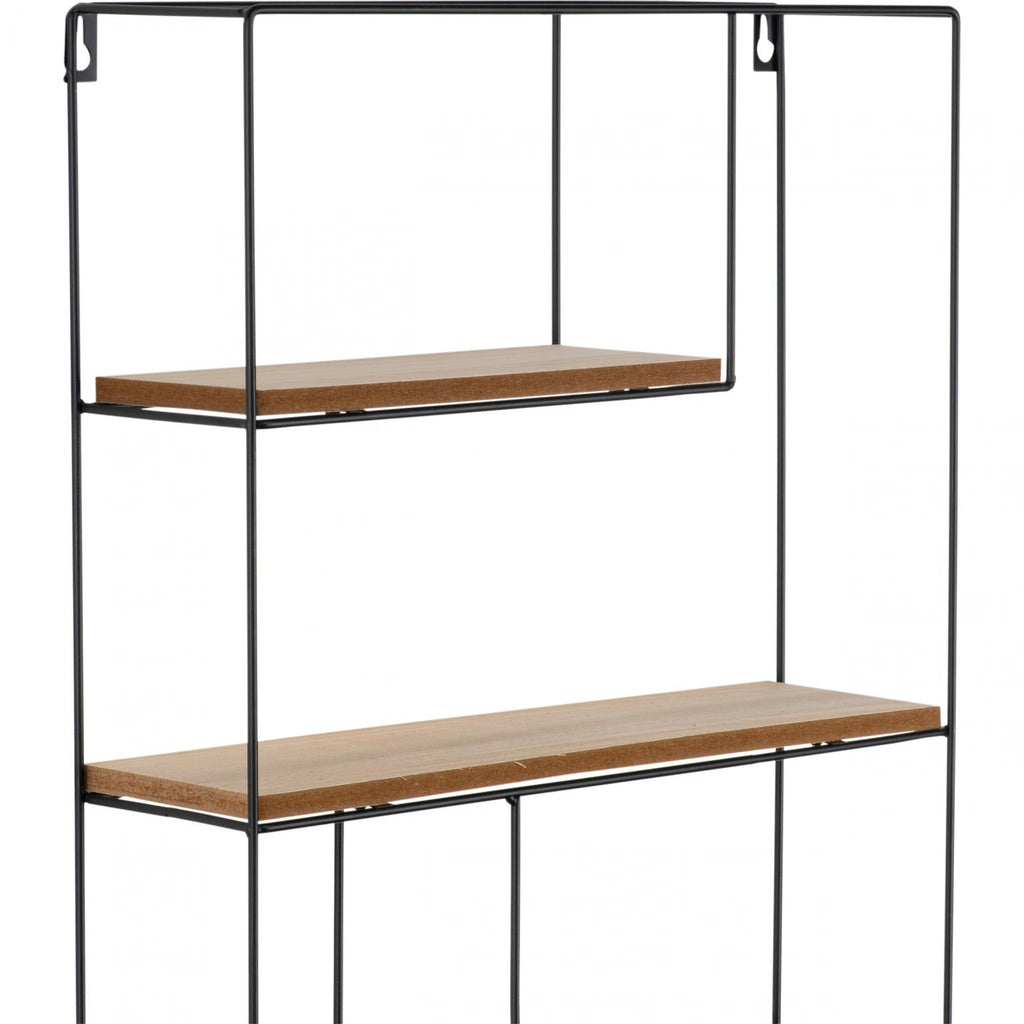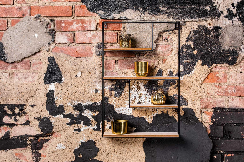 Het moderne Henzo wandrek zwart heeft 4 plankjes voor bijvoorbeeld decoratie of foto's. Het wandrek heeft een industrieel ontwerp en is eenvoudig op te hangen. Het product is volledig gemonteerd.